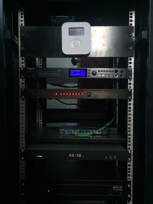 该项目配置了一台BIAMP Nexia作为核心音频处理器,并采用了六只吸顶扬声器平均分布的扩声方式。接待厅主要以语言类扩声为主要形式,该厅堂座椅分布较广,因此需要扬声器有较好的覆盖,这样可以保证扬声器覆盖整个会场的听音区。另外由于两个主要领导席位有拾音需求,为了兼顾最好的拾音效果和最佳的摆放方式,配置两只瑞乐图技术的话筒,可以完美的解决此问题。为了在使用过程中方便调整各信号音量大小,系统还配置了一块控制面板,以便直观的实时调整个通道音量。