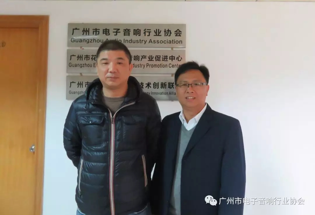 2018年1月5日下午,中国电子音响行业协会(以下简称 “中音协”)陈立新秘书长莅临广州市电子音响行业协会(以下简称 “广音协”)调研指导工作,与“广音协”张昌海秘书长就协会工作开展及加强合作进行了亲切深入友好的交流。