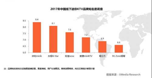 在品牌知名度排行榜,咪哒miniK以8.4的知名度在各品牌中领先,友唱M-Bar以8.1的知名度紧随其后。