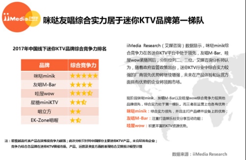 从2017年的发展苗头来看,咪哒miniK的硬件技术优势给予了品牌领跑行业的有力武器。在艾媒咨询关于迷你KTV品牌唱录效果认可度的调查中,咪哒miniK唱录效果认可度最高,达到了8.7,友唱M-Bar和哇屋wow分别为8.2和8.0。这也说明,咪哒miniK凭借良好的产品体验,正越来越多的受到市场的肯定,同时在产品上积累的优势力量,正在向品牌移植,应对未来的市场竞争,咪哒miniK是最具发展后劲的。加上线上线下的社区运营,与音乐类IP的联动留存用户,让咪哒miniK形成了相对规模的竞争优势,稳固了行业第一的位置。