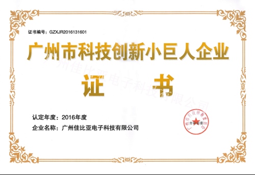 近日,广州佳比亚电子科技有限公司(以下简称“佳比”)凭借一流的科技创新实力及巨大的市场发展潜力,顺利通过审评,荣获“广州市科技创新小巨人企业”称号。