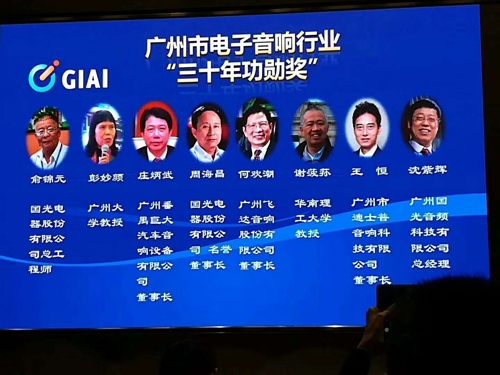 迪士普董事长王恒荣获广州市电子音响行业--三十年功勋奖