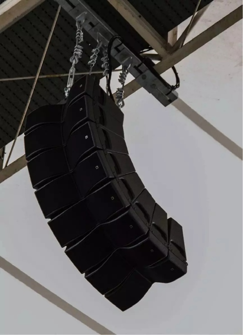 覆盖第一和第二座位区的体育馆内圈扩声系统由18列每列6只Kara紧凑型线声源阵列组成,总计108只扬声器。另有4列每列4只Kara扬声器的阵列构成内场系统,吊装于马道下方。
