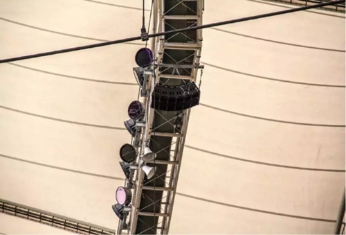 而覆盖第三和顶层座位区的外圈扩声系统包含256只Kiva II超紧凑全天候线声源扬声器,总共32列每列8只扬声器吊装于外圈马道下方。对于挑台形成的阴影区域,一个由136只L-Acoustics 5XT超紧凑同轴扬声器组成的补声系统均匀地分布在了第一和第二层挑台下方。