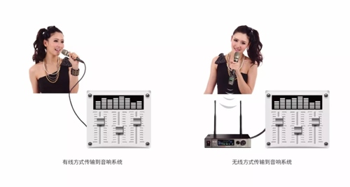 常用的方式是采用有线方式直接传输到音响系统,但在舞台演出或机动性的应用场合,采用无线传输的方式,可以摆脱麦克风连线的缠绊与限制,让表演活动更自由方便。