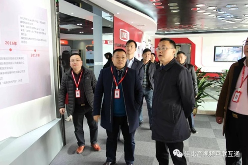 集团总裁吴明峰向庞县一行介绍了佳比集团总部的情况,并详解了佳比全国各自营分公司的快速推进落地和国际业务的蓬勃发展。庞县长一行走进佳比音视频互联互通展区、生产车间、研发中心,详细考察了佳比的研发、生产及产品情况。在产品体验的过程中,领导们对我司AVC音视频互联互通解决方案及相关产品颇感兴趣,并对我司产品在音视频领域所做的努力及成果表示由衷的赞赏。