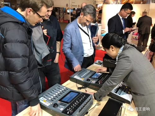 期间,音王展位受到了海内外业界的广泛关注,也吸引了大批欧洲客户的莅临参观,尤其是音王最新款的超紧凑型数字调音台DM20M、超紧凑型数字调音台DM系列和DB系列广受欢迎,靓丽的外观和耳目一新的体验受到客户们的啧啧称赞。