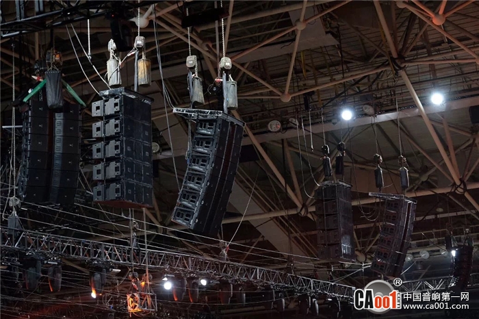 扩声系统,采用12只JBL VTX V25Ⅱ线阵列全频扬声器和10只JBL VT4880超低音线阵列扬声器,各分成两组吊挂在舞台两侧。12只JBL VTX V20 线阵列全频扬声器分成两组用于侧区补声,8只JBL STX 812M在舞台上用来满足舞台返听的需要。功放系统配套使用Crown旗舰级ITHD系列功率放大器。