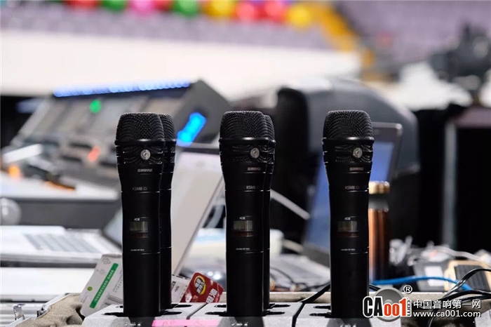 现场使用6通道的Shure Axient Digital ,并在每只手持发射机上配备了KSM8双震膜咪头,8通道的Shure ULXD,12通道的Shure QLXD数字无线系统给主持人和表演者。
