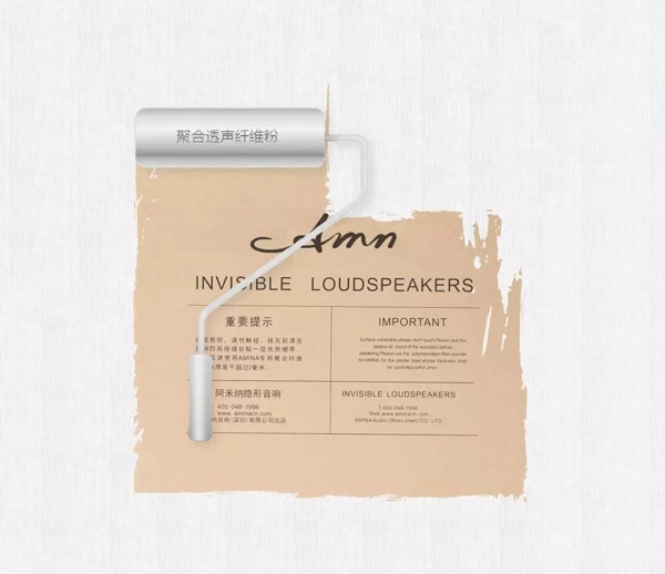 隐:整机封闭于墙体中,表面可覆盖不超过2mm的墙壁装饰材料,机身完全隐形。不占用空间,不破坏装修。为了保证音质,阿米纳发明了专用聚合透声纤维粉,涂抹在音响表面,彻底解决墙体阻挡声音的问题,并大幅提高音质。