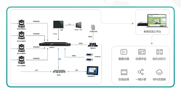 音视频一线通智慧校园系统具有超强的音视频编解码能力,是音频、视频、传输与控制、常态化录播与一体的高度融合的系统。