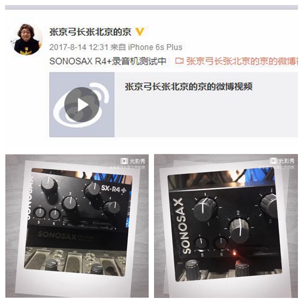 日前,张京老师在其社交网站发布了一条关于录音设备测试的微博短视频,视频中对SONOSAX R4+录音机进行测试,平时对录音领域颇有涉猎的音响网小编立马来了兴致,决定一探SONOSAX R4+的虚实。据了解,SONOSAX一直致力于研发生产现场录音调音台, 其品牌创始人Jacques Sax和他的团队一直走在技术创新的最前沿,旗下产品在多部经典影片录制工作中都得到广泛应用。与此同时,SONOSAX推出的SX-R4+录音机更是得到了业内人士的好评。
