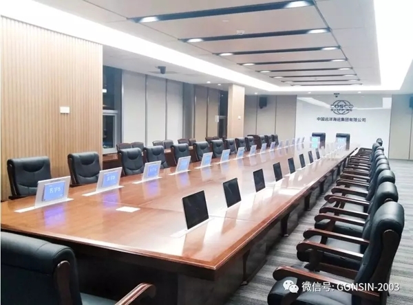 中国远洋海运集团着力布局基于商业模式创新的互联网+思维,进一步促进航运要素的整合,全力打造全球领先的综合物流供应链服务商。公信会议结合集团大楼建筑结构及客户需求进行设计,选用了公信双屏升降一体式无纸化会议终端。系统高度集成了音频技术、视频技术、通信技术、软件技术,丰富的软硬件功能设计可满足高端的商务会议需求。通过高度电子化、网络化和智能化,实现了会议前中后期的无纸化管控,突显了节能、环保、智能操作等优势,为集团带来全新的会议体验。