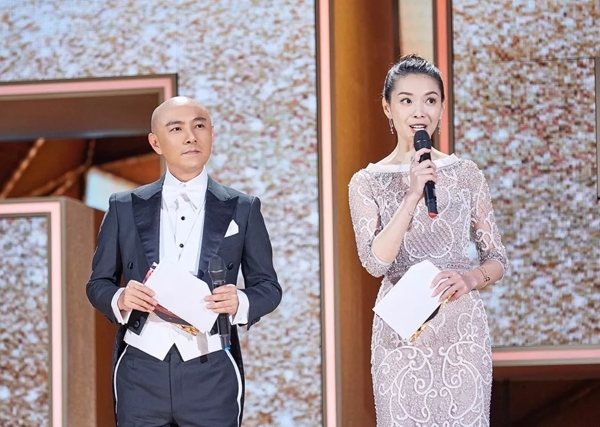 手持JTS麦克风的开幕式主持人:张卫健、蓝羽、赵立新、栗坤
