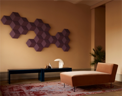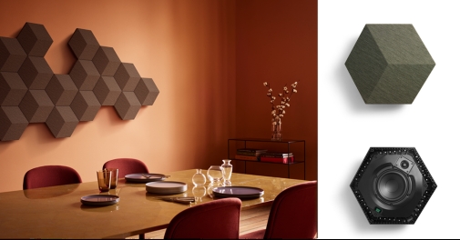 BeoSound Shape具备两大亮点。每个六边形模块都具备扬声器、功放与吸声减震器的三重功能。独特的共振抑制功能使其消除了声音在墙壁上多次反射的音效问题,营造出理想氛围,带给用户身临其境般的音效。即使处于关闭状态,也依旧可以改进室内日常音效。