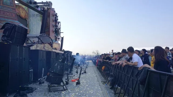 三舞台(Bass Dream)使用睿铭声光代理的另一品牌,来自葡萄牙的Next-Proaudio。舞台左右各吊挂10只LA212x作为主扩声系统,并通过堆叠在舞台前面8组,共24只LAs418进一步作低频延伸。DJ监听由每边2只LA122线阵列加3只LAs118超低音提供,另外有4只X15作地面监听。调音台采用Midas PRO2。