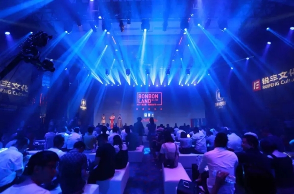 锐丰文化在展会现场为我们打造潮流派对“BonBon Party”。运用投影技术与灯光,结合音响系统,将声音的传递可视化。
