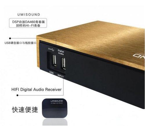 从以上可以看出,这款UMISOUND优美声DA460青春版与之前的DA460WIFI版还是有一定的差别存在,WIFI版多了一个娱乐性更一个WIFI音乐的超强300MBS带宽,以及无线调音还有安卓 苹果 IPAD的APP,与用户的互动十分的强烈,然而这款DA460青春版多了一个可选择升级数字音频接收器,其综合性能上看起来似乎更加的简单便捷更加的人性化,虽然高大上没有WIFI来的强烈,但是似乎其功能也极具实用,据说这款产品也机具性价比,我们一起来期待这款产品带给我们的极致好声音吧。