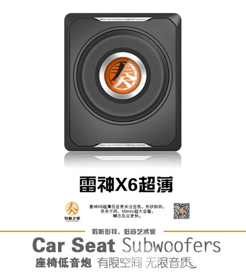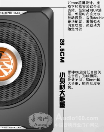 节奏之星X6座椅低音炮延续了上一代X8超薄炮的外形设计,外壳依旧选用国际顶级的铝合金材料,结实耐用的UV漆层,彰显时尚质感。鉴于传统低音炮形状过大难改装的问题,采用长为仅28.5cm,厚度为70mm的小身材设计。而最吸引人的是内置50mm音圈,低音的瞬态反应更迅速,外形变小内置低频能量却更大,强劲动力为车主带来更畅快的音乐驾驶体验。