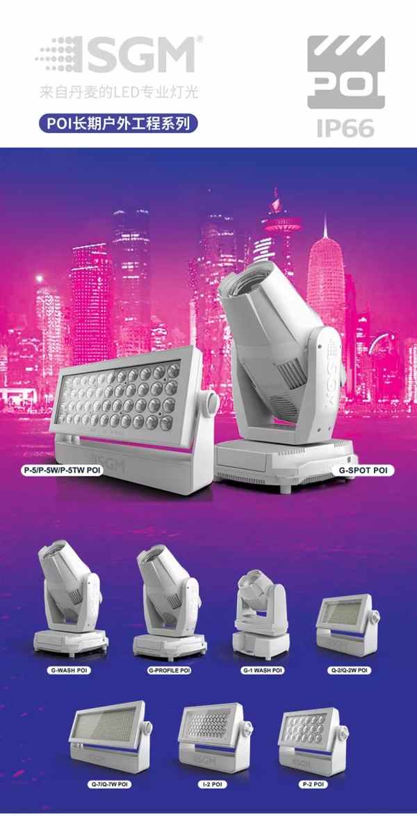 SGM最新推出的长期户外固定安装(POI)IP66防护等级照明产品系列,除了具有超高亮度跟丰富色彩之外,IP66的防水防尘灯壳设计能够确保灯具能够对抗室外的各种极端天气情况,例如:雨天、冰雪、沙尘、酷暑,甚至是海上的盐渍。