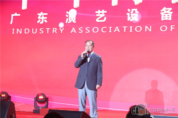 广东演艺设备行业商会会长王锐祥率先上台发表致辞,他对大家的到来表示衷心的感谢,并表示自己十分热爱演艺设备行业以及商会这个团队。希望在今晚一个重要的时刻,在座的企业家能代表行业好好接待身边的朋友们,更希望各位领导朋友们多多关注接下来举办的GETshow展会。
