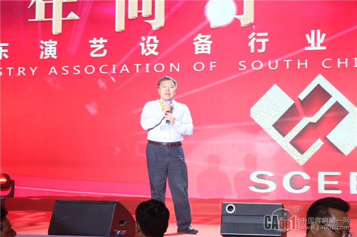 中国演艺设备技术协会副会长周春志上台发表致辞,其对本次盛会的举行表示衷心的祝贺,并且祝愿商会在会长的带领下走向更大的辉煌。