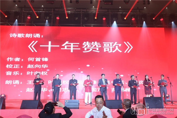 晚会现场气氛热烈,觥筹交错;节目精彩纷呈、形式多样,大家一边享受着美味的食物,一边找人互相畅谈,整个厅室座无虚席,在热烈的掌声中,由企业家们亲自作词作曲的《十年赞歌》,以朗诵形式揭开商会十年成长历程的帷幕。