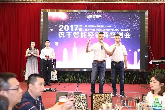 锐丰智能董事总经理朱世平先生为晚宴致答谢词。回首过去一年的风雨历程,锐丰智能与各经销商相互扶持,共同成长、共同奋斗取得了卓越成绩,为锐丰智能发展做出了不懈努力!成绩来之不易,它凝聚了全体锐丰人的智慧和汗水!