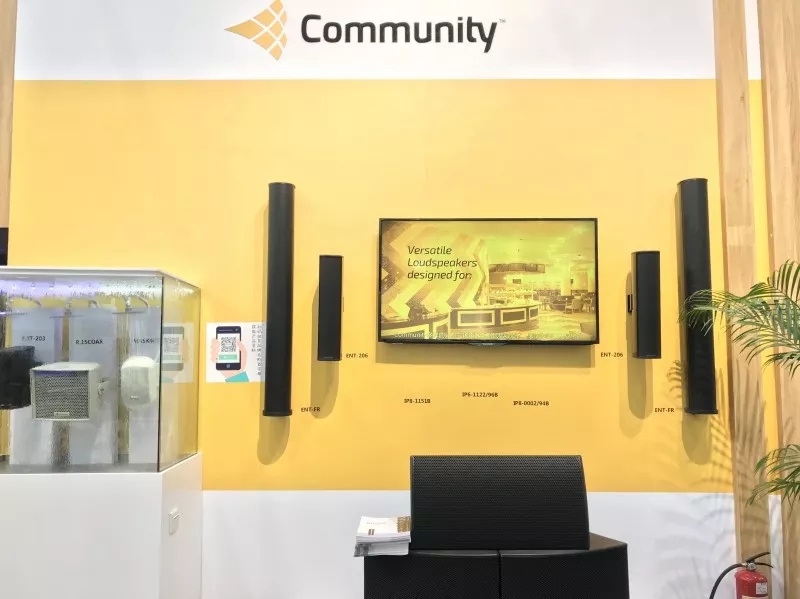 在本次广州展中,Community展示了多款品牌重点产品,新产品模块化线阵列IV6、R系列、I系列音箱以及具有高性能的ENT系列,其中新产品IV6专为中大型固定安装市场应用而设计,适用于各种投射距离的应用场景,可提供非常卓越的音乐品质和人声清晰度。