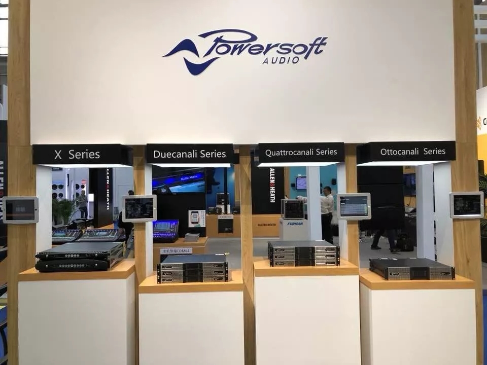本次广州展易科国际带来了Powersoft X系列、Quattrocanali系列、Ottocanali系列与Duecanali系列功放,其中2通道为固定安装扩声系统而设计的Duecanali系列功放再次推出804和4804两款新品,804和4804的出现使得Duecanali系列产品更加完整,适用于各种固定安装场合。