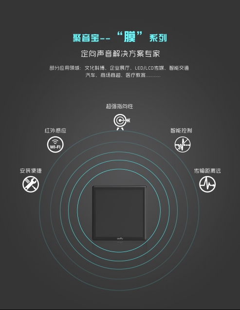 如果说聚音宝矩阵产品完成的是结构上的创新,那么聚音宝膜产品则是打破了原有的技术壁垒,实现了技术的创新。以往的聚音宝产品通过独有的算法与核心技术,利用换能器实现电声转换;不同的是,膜产品通过更为精密的技术手段实现了通过一张薄膜直接发声的高科技。由于薄膜的形态更方便适用于更多领域,新老客户都表示期待这款产品的正式推出。