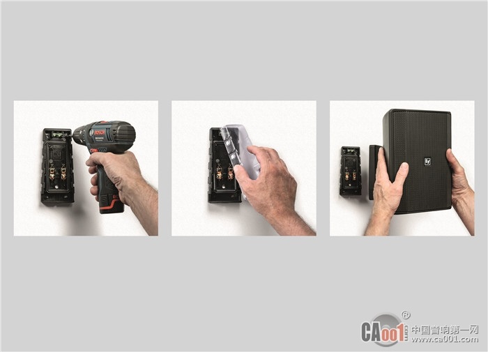 创新的全新壁挂式安装系统,三个步骤就能轻松完成安装:安装壁挂式支架(内置气泡水平仪,可节省安装时间),在内部端接电缆,盖上喷漆保护盖以保护壁挂式支架,直到施工完成(此时可以拆下保护盖),然后将带有可调节臂的预接线扬声器滑入壁挂式支架中并锁定到位即可。