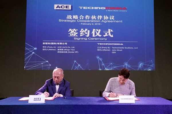 ACE与Technomedia经过前期的沟通和协商,于2018年2月2日在北京正式举行了签约仪式,成功建立了战略合作伙伴关系,在两家企业原有的领域和基础上,拓展了双方在中国内地、香港和澳门等地主题休闲乐园市场的服务能力。