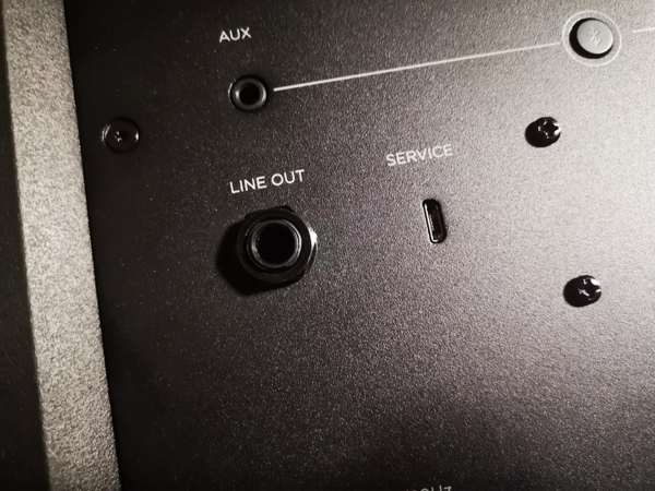 支持蓝牙传输的音源输入通道,也包括传统的3.5mm有线输入;.LINE OUT 挺有意思,它是将主音箱的信通过信号线连接第二个S1 Pro的AUX输入孔,组成一个双声道有源系统。这样一套2.0.0的有源系统就有点大材小用了,效果肯定不用多说。Service 仅仅是一个用于bose软件调控的USE 2.0口。