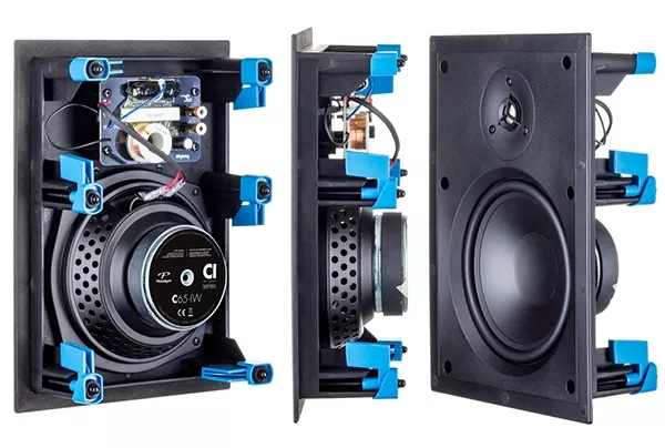 来自加拿大的Paradigm有多款嵌入式喇叭,其中,H65-IW采2单体2音路设计,采用一个4/3吋的PTD(Pure-Titanium Domes)纯钛金属半球体高音,前方还有导波器。钛金属的质量轻,质地坚硬,是优秀的单体振膜材料,也一直为Paradigm所爱用。低音单体则是一个6.5吋的多层聚合物振膜单体,背后磁铁则是经过计算机精密计算而优化过的加大号磁力系统。