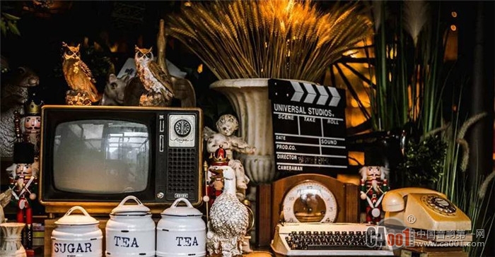 复古情怀藏在这里的每个角落。有点怀旧又充满文艺的后花园里,从上到下,绿色植物灯饰、各种复古小摆件、甚至地上也不放过。