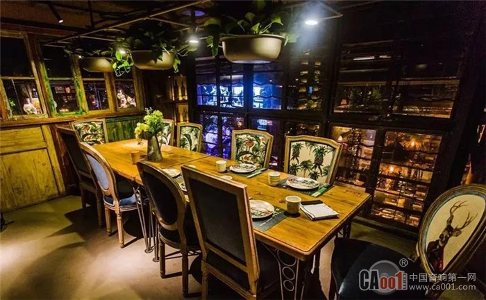 近1000㎡的宽敞空间,混泥土、钢结构、原木等自然构建一个原生态的大环境,绿植吊灯饶有诗意,像是不小心闯进来的绿野仙踪。