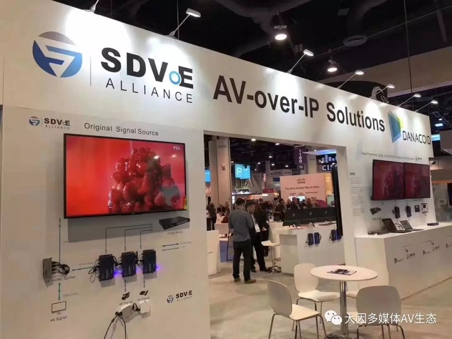 稍微细心一点你就会发现,几张图片我几乎都用了“IP化”做标注;再细心一点你会有另一个发现 :DANACOID的展位上无处不在的“SDVoE”字样。